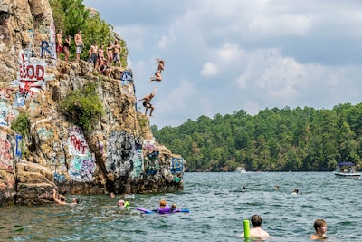 The climb upwards to get to the top is pretty straightforward. After watching people, including teenage girls, leap from the much taller chimney rock estimates range between 50 and 60 feet he decided to jump, although williams refused to and encouraged him not. Bassmaster.com an iconic location on this scenic alabama lake, chimney rock is a popular summer party spot where the adventurous types like to jump from the cliffs into 120 feet of tallapoosa. There is a rope to assist you in climbing up to the shorter rock (chicken rock) and is around 20 feet high. Burke cove on lake martin. Joshua steven sebelius and amy marie sebelius to robert t. For the more daring individuals, continue upwards to the high 60 foot jump off of the top of acapulco rock. Chimney rock, actually named acapulco rock, is a popular site for boaters on lake martin. They combine to create a mountain experience that is postcard perfect. Its approximately 44,000 acre lake. The lake has several landmarks, such as the kowaliga bridge, and several marinas, but perhaps the most recognized landmarks on the lake are chimney rock and acapulco rock, two large natural formations. 241 pine tree cir, dadeville, al 36853. The funny thing is, this really isn't chimney rock.